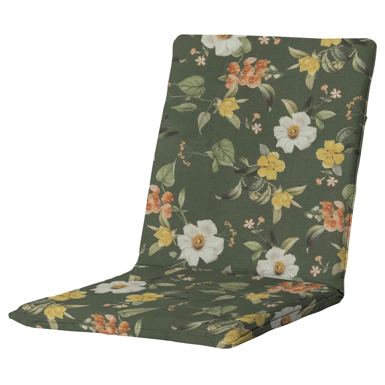 Dit tuinstoelkussen is afgewerkt met biezen en is passend voor stoelen met een lage rug.