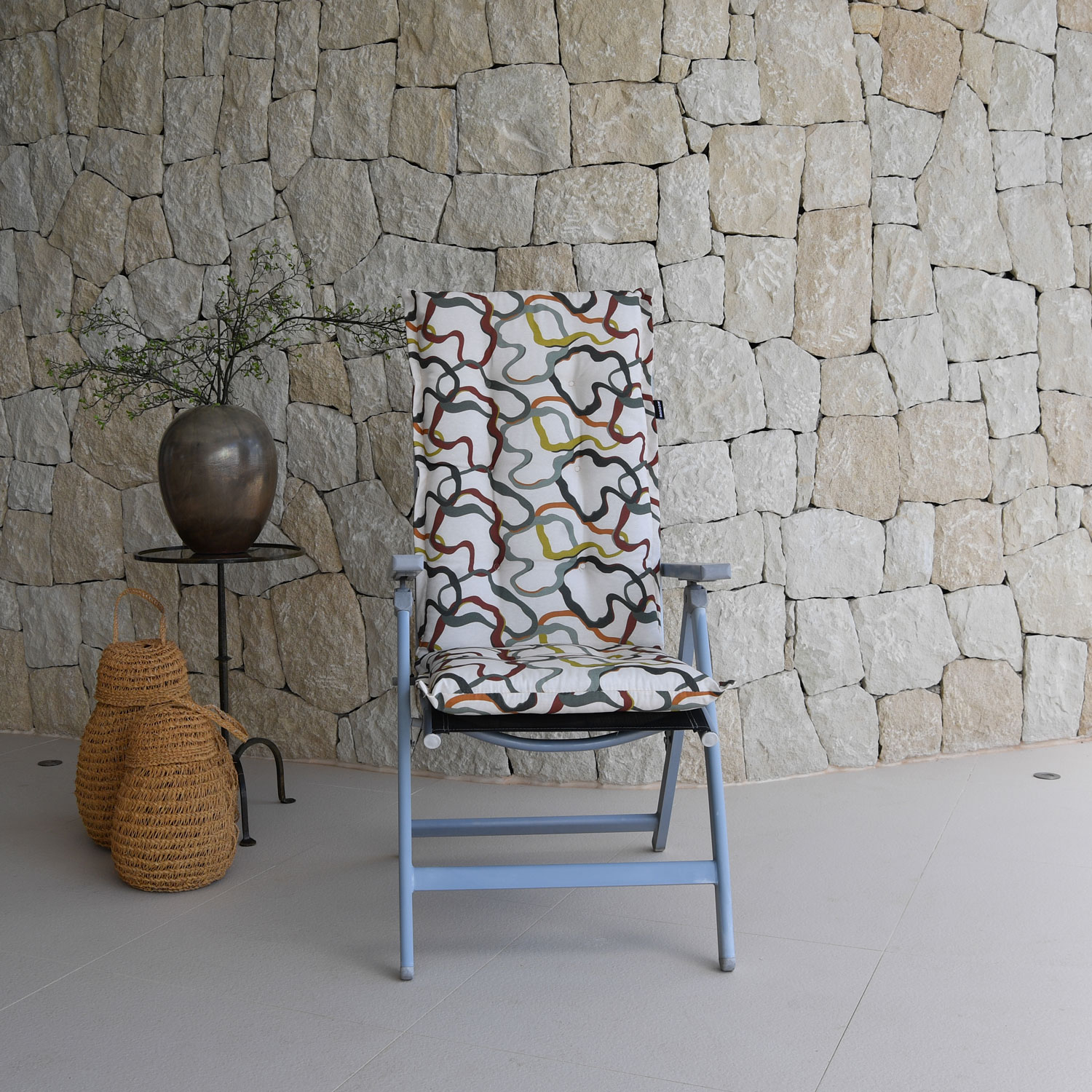 • Je kunt het tuinstoelkussen gemakkelijk vastmaken met de band en touwtjes van het kussen.